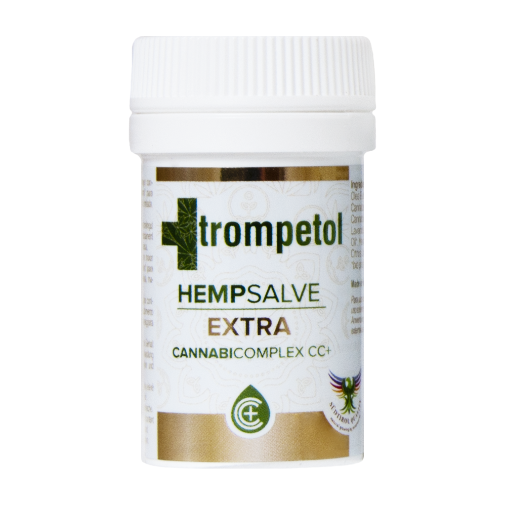 Maść Trompetol oprócz oleju z konopi i oleju z oliwek z pierwszego tłoczenia zawiera wyjątkowy ekstrakt z zielonych części konopi bogaty w substancję CBD. Większość maści konopnych na polskim rynku zawiera jedynie olej spożywczy z nasion konopi, a nie zawiera ekstraktu z liści, który ma wyjątkowo silne działanie. Aktywny składnik CBD, pozyskiwany z zielonych części konopi siewnych ma działanie przeciwzapalne i przeciwbólowe. Łagodzi bóle mięśniowe, kostno-stawowe, kontuzje sportowe i stany zapalne skóry. Kannabinoidy zawarte w konopiach pomagają przy bólach różnego pochodzenia spowodowanych uszkodzeniem lub wywołanych stanem zapalnym, przy bólach stawów (np. reumatoidalne zapalenie stawów), mięśni czy ścięgien.